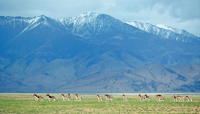 新疆阿爾金山國家級自然保護區有國家一級保護動物17種,活躍著藏野驢、野牦牛、藏羚羊、藏原羚、鼠兔、黑頸鶴等珍稀動物,生物多樣性日益豐富。圖為2023年6月30日,在阿爾金山國家級自然保護區拍攝的藏野驢。新華社記者 才揚/攝